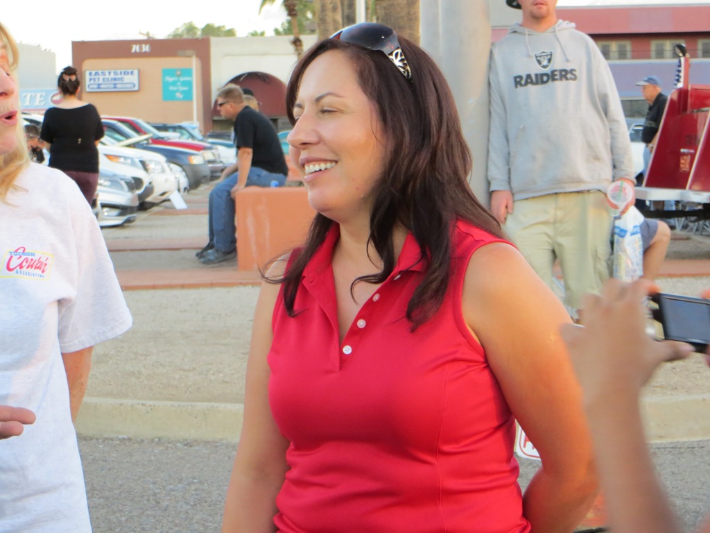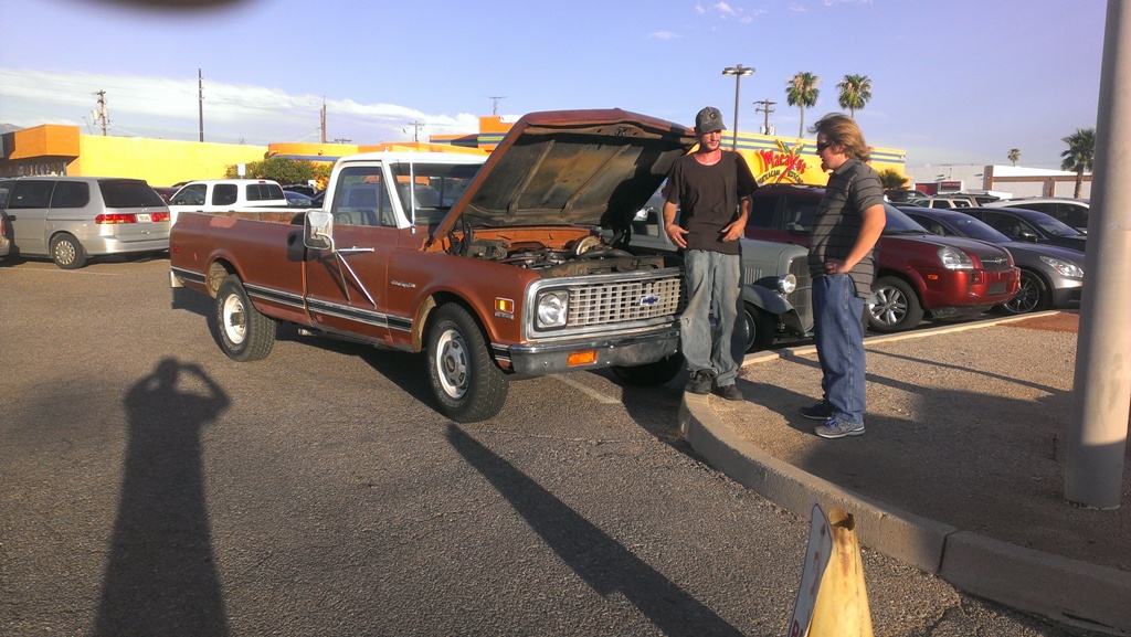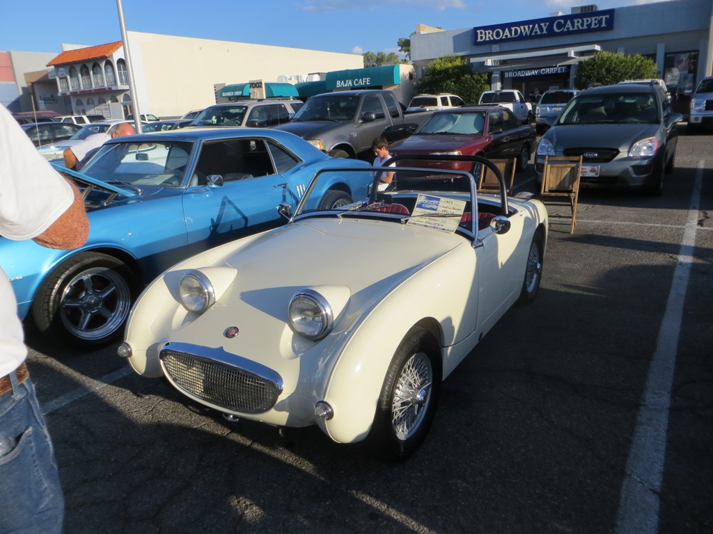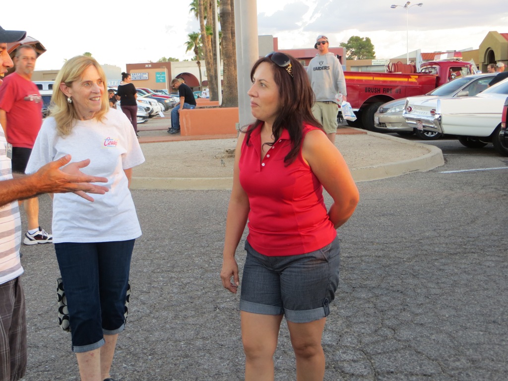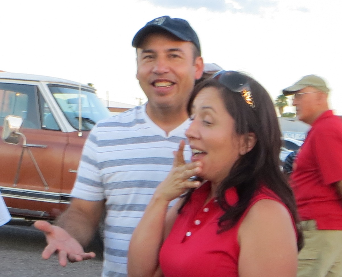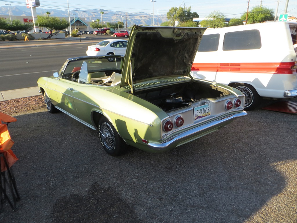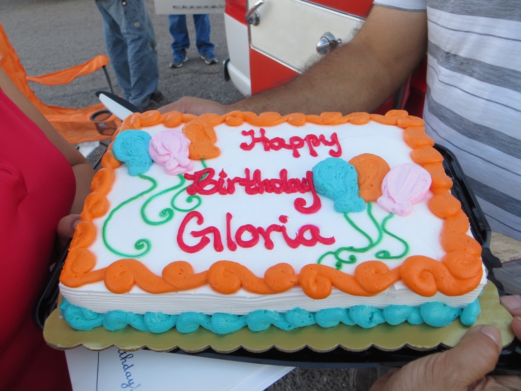 TCA showed up at Little Anthony's Diner on Saturday night, July 19, 2014 with 5 Corvairs and a pickup truck. The treat of the evening was Gloria Trejo receiving a brand new 1969 Corvair convertible as a birthday present from her husband Frank.